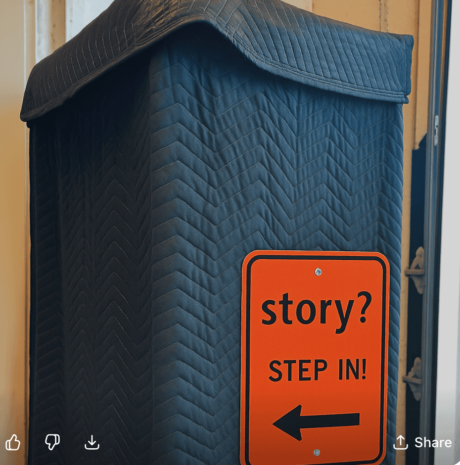 Step-In! grew from the same impulse that shaped Write Up The Coast — to listen more deeply and build community through stories. It began as a mobile recording booth, a quiet space where people could pause in the middle of daily life to reflect, share, and be heard. Today, Step-In! is booth, a hand-held mic on the run and a state of mind — a reminder that conversation, like community, begins when we listen and when we have our own story heard.